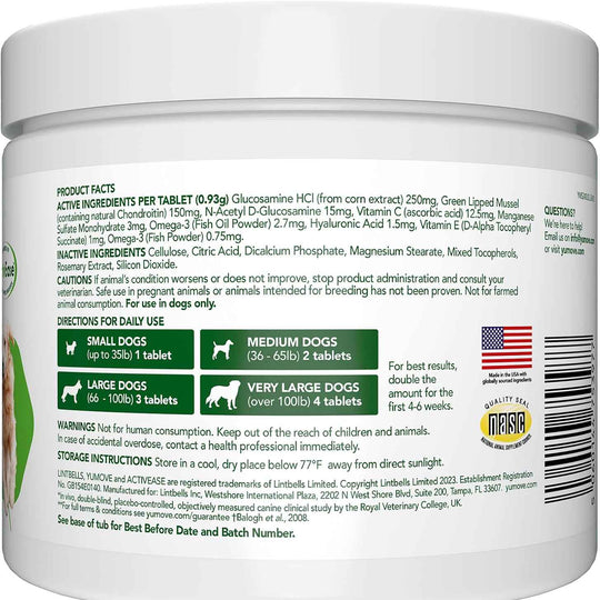 • Yumove Hip & Joint Supplement for Dogs - with Glucosamine Chondroitin, Omega 3, Hyaluronic Acid, Green Lipped Mussel & Fish